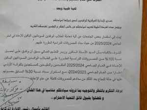 تحدي ثالث … ضغط اكاديمي يفوق إمكانياتهم المتواضعة … طريقة لم يعتادوها … وقبل أن يفيقوا من صدمات فقدهم وجراح حربهم تلقوا صفعة جديدة وقرار ظالم وجائر من إدارة الوافدين … يقضي بأن الراسبين في امتحان العام تسحب منهم منحة التخفيض الدراسية … قرار جديد وسكينة أخري تصوب علي رقبة التور المذبوح ….. من اين للطلاب السودانيين الآلاف المؤلفة من الدولارات لمواجهة تحديات الالتحاق بالجامعات المصرية والتي كانت تفتح اذرعها سابقا قبل الحرب لتحتضن الطلاب ودون قرارات جائرة مجحفة