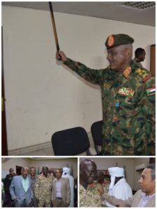 في ذات السياق استقبل الفريق أول ركن محمد عثمان الحسين رئيس هيئة الأركان قافلة الدعم والمساندة التى سيرتھا الھيئة السودانية للمواصفات والمقاييس لولاية الخرطوم والقيادة العامة وسلاح الإشارة والكلية الحربية والمتحف الحربي.