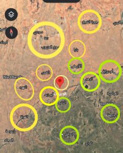 و الزحف اتجاه المناطق باللون الأصفر