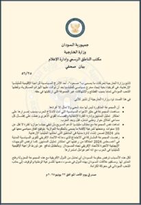 أصدرت وزارة الخارجية السودانية بيانا أكدت فيه رفض حكومة السودان أي تعامل من الدول الأفريقية مع هذه المجموعة المعزولة وفتح المنابر لها وستقيم علاقات السودان بهذه الدول في ضوء دعمها للشرعية الوطنية والوقوف إلي حانب الشعب السوداني في معركة الكرامة ، وإليكم نص البيان