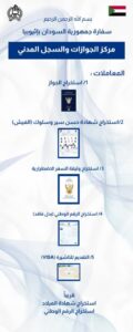 * *الخبر:* افتتاح رسمي لمركز الجوازات والمعاملات الهجرية بالسفارة السودانية في العاصمة الإثيوبية أديس أبابا، يوم الأربعاء 25 يونيو 2025، في تمام العاشرة صباحًا.