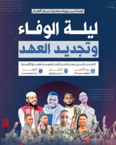 *لجنة أسر شهداء متحرك مسك الختام تقيم اليوم : “ليلة الوفاء وتجديد العهد” ام درمان شارع الوادي 4 م*