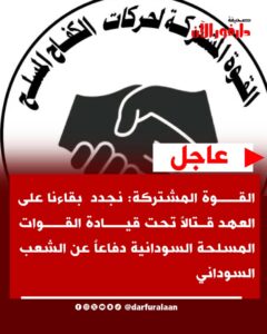 عاجل| القوة المشتركة لحركات الكفاح المسلح: