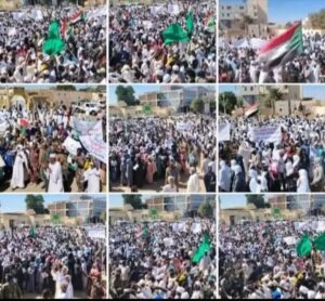 وعلت الهتافات كلنا فداك يا وطن وخرجت كل مدن السودان وقراه دعما وسندا للجيش وكانت المسيرات هادرة اوصلت رسالتها لكل العالم بأن السودان محروس بجيشه وبشعبه وأن لا مجال لاي تدخل خارجي واليوم خرج السودانيون في باريس ولندن وغيرها من مدن العالم انه يوم الاصطفاف الوطني خلف الجيش واليوم كان كل الشعب جيش