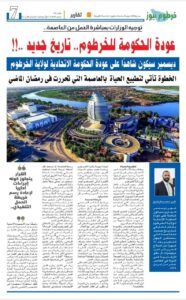 ديسمبر سيكون شاهدًا على عودة الحكومة الاتحادية لولاية الخرطوم..