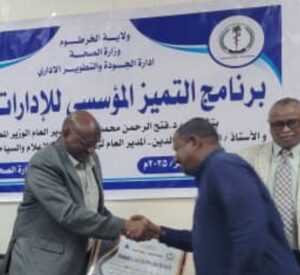 أعلنت وزارة الصحة ولاية الخرطوم عبر إدارة الجودة والتطوير الإداري ، خلال برنامج التميز المؤسسي للإدارات، إدارة الإعلام بوزارة الصحة ولاية الخرطوم كإدارة مميزة للعام 2025، ، وكرمت مديرها الأستاذ السر محمد الياس ومنسوبيها ، وسمت في الوقت ذاته دكتورة فاطمة عبدالرحيم مدير الإدارة العامة للمنظمات والشراكات الموظف المثالي لهذا العام وكرمتها.