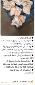 شحنات من ذهب السودان ثروة شعبٍ يذبح ويُهجّر ويُجوَّع، تُرحَّل بانتظام وبعلم جهات رسمية عبر مطارات إقليمية لتصل في نهاية المطاف إلى دويلة الإمارات !!!!!
