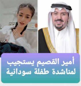 في لفتة إنسانية نبيلة وليست بمستغربة تعكس عمق القيم التي قامت عليها المملكة العربية السعودية واستمرار نهجها في إعلاء شأن الإنسان استجاب سمو أمير منطقة القصيم الأمير الدكتور فيصل بن مشعل بن سعود بتوجيه من صاحب السمو الملكي ولي العهد الأمير محمد بن سلمان لمناشدة الطفلة السودانية اليتيمة العنود الطريفي في موقف هزّ المشاعر قبل أن يملأ العناوين.